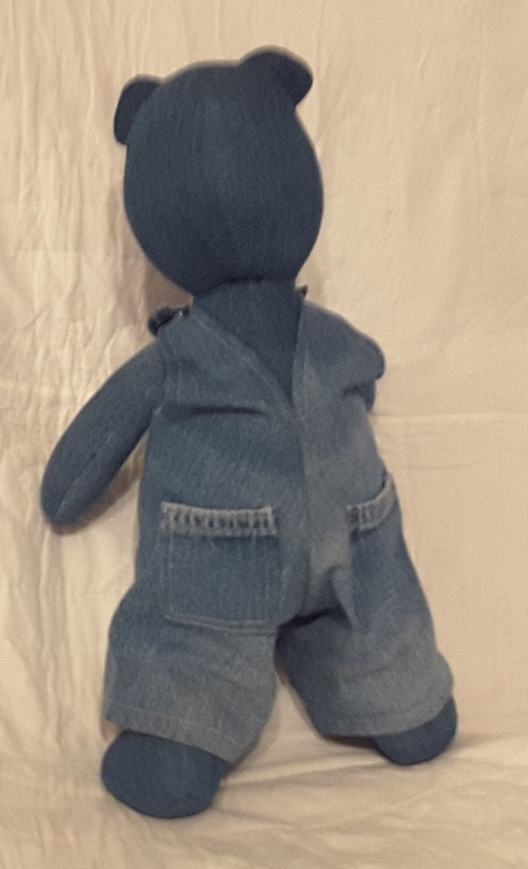 What is special about this bear is that it was made for my husband's 70th birthday and it was made using overalls that belonged to his dad!