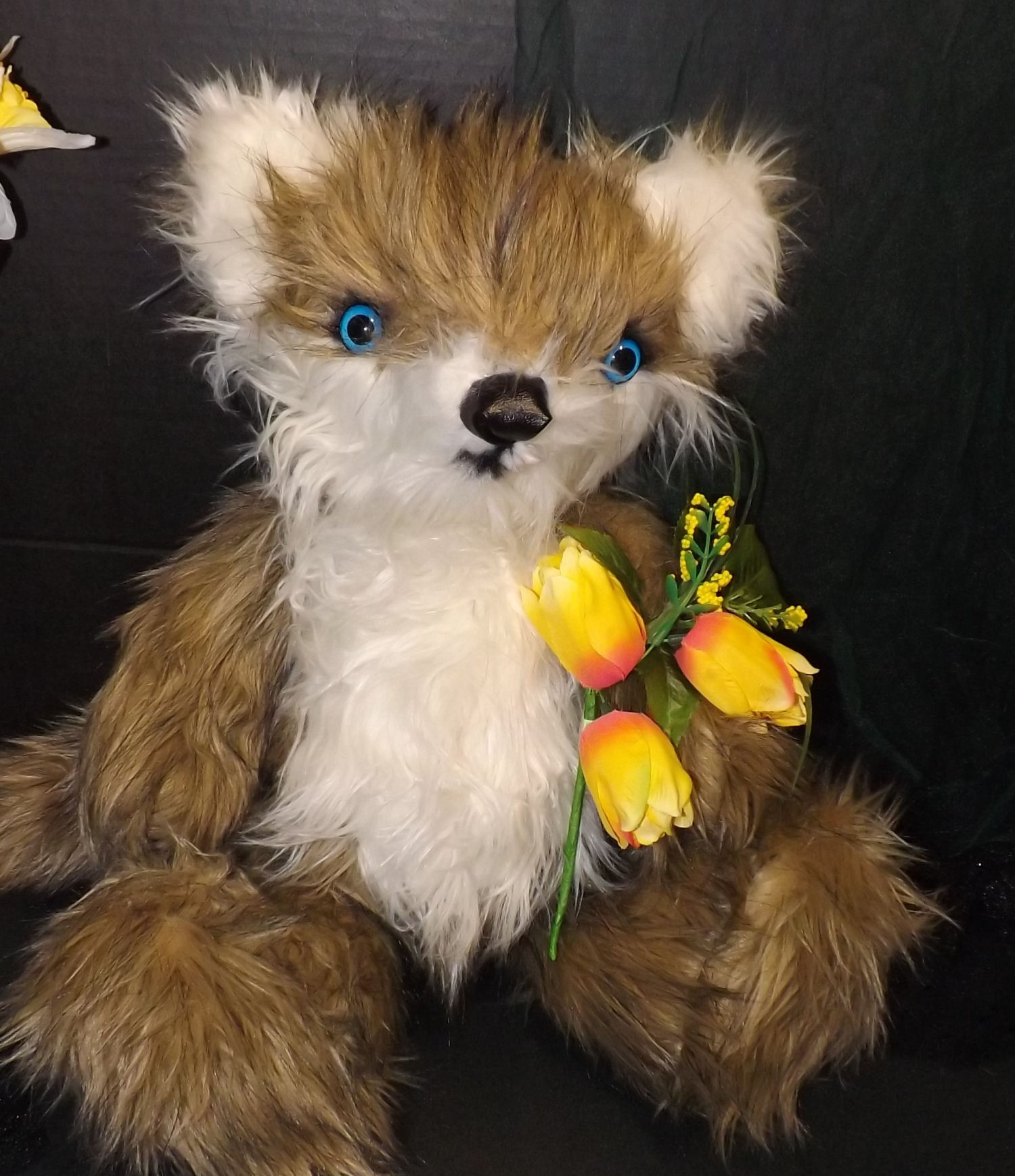 This little Guy is made from a pattern by Furry Critters I have altered it a little bit by adding claws and felting around the eyes and inner ears. It is made with Alpaca and has a loc line armature and also jointed the nose and claws I made with Apoxie putty and the paws and eyelids are leather and you can open or close the mouth.