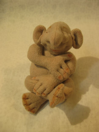 Sweet Cheeks is made of cotton knit and stuffed with wool. It took me about 2 hrs to make the head, after that the rest was easy.