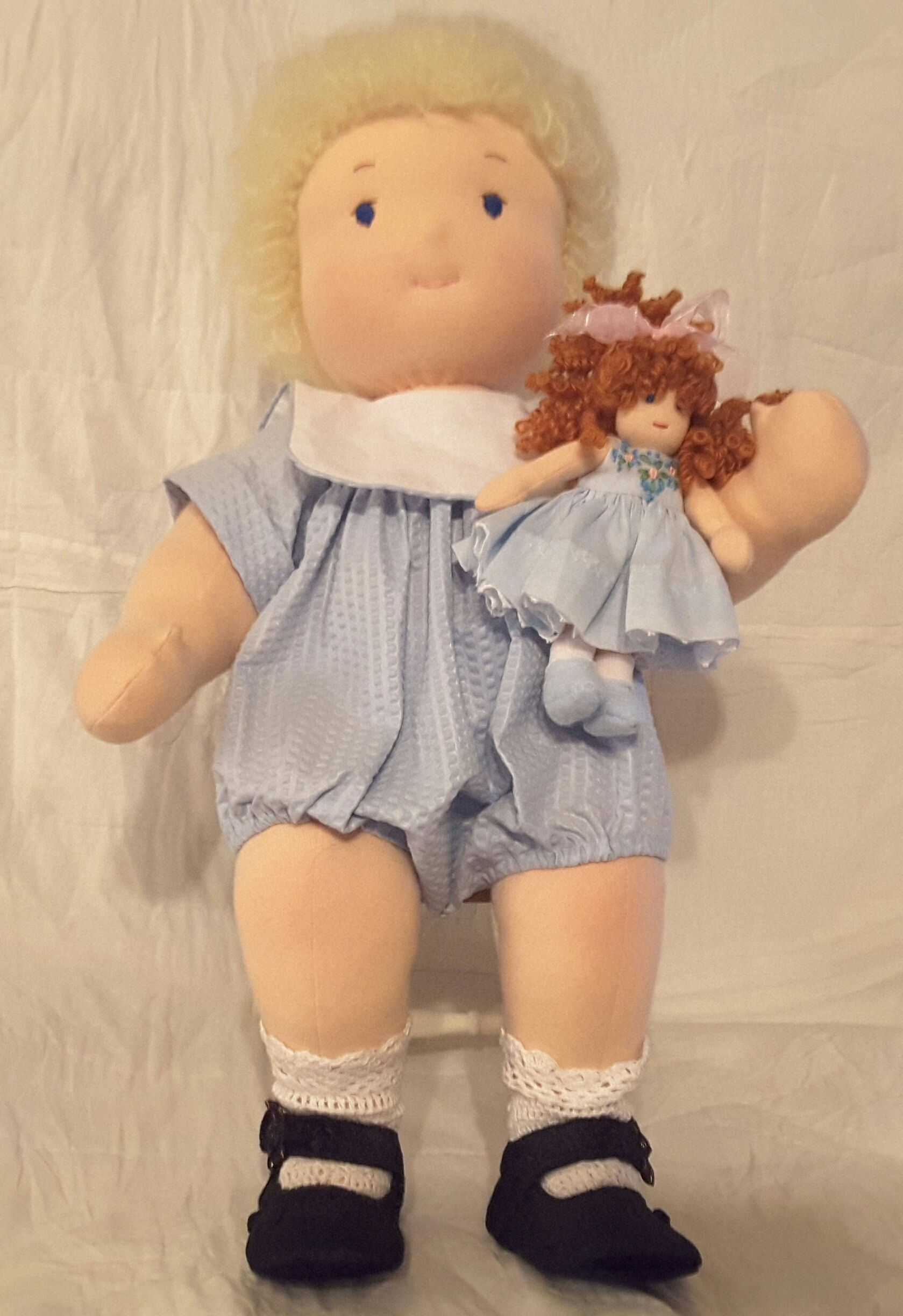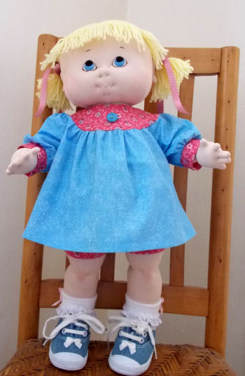 This doll is about 18 inches tall. She was made from the Dear Ones pattern by Kezi Matthews.