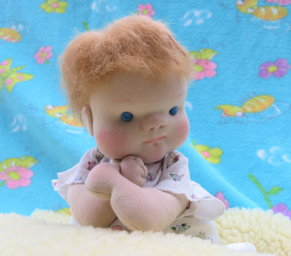 This baby is based on the Waldorf doll pattern called "Floppy Baby" by Lali Doll Nursery, she is a weighted 12" doll with incredible cuddle power.