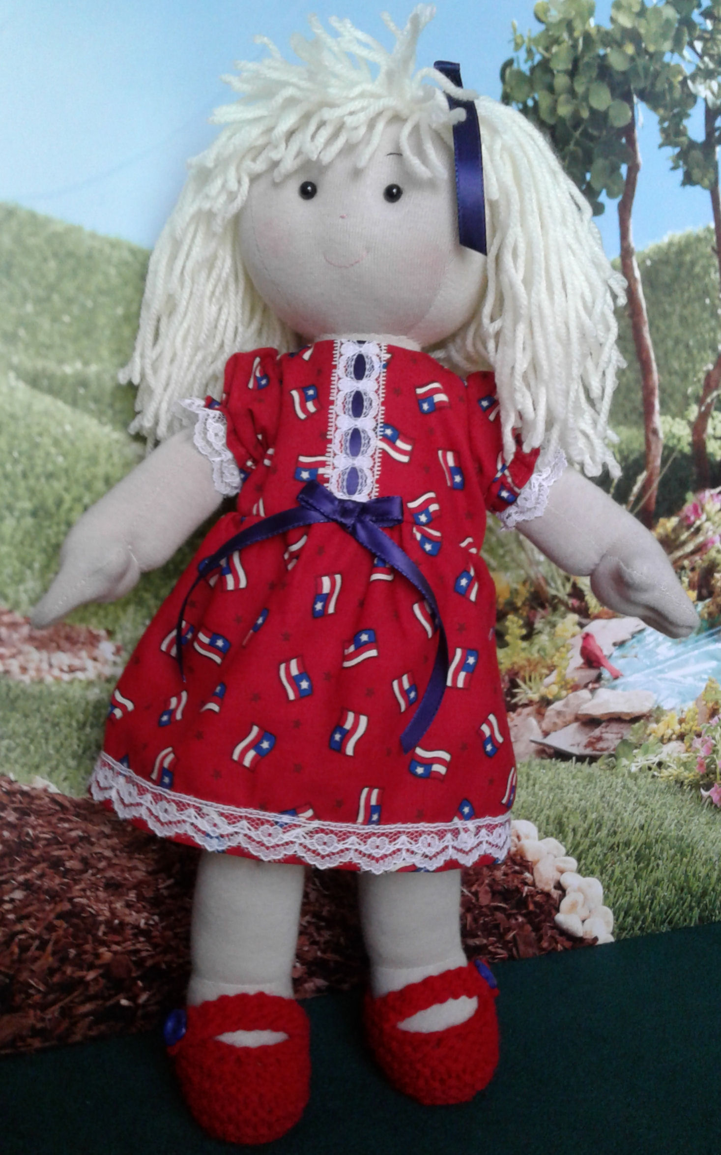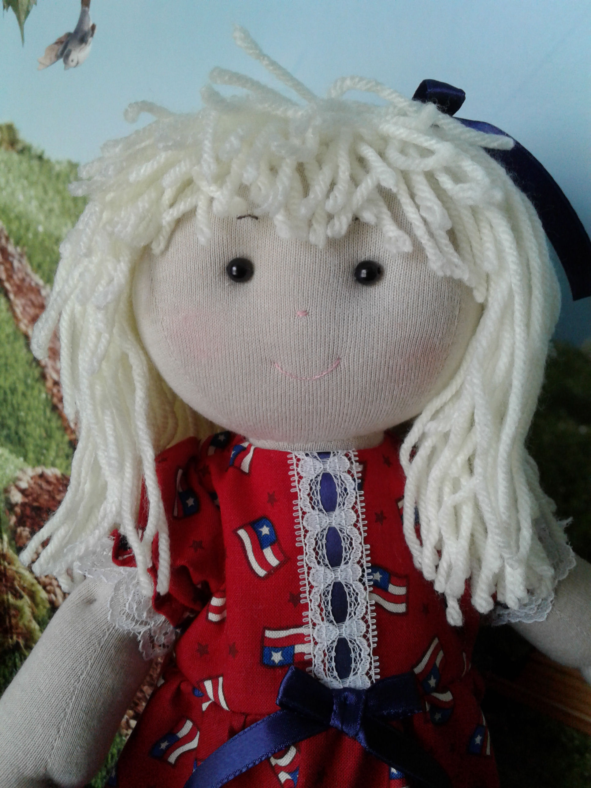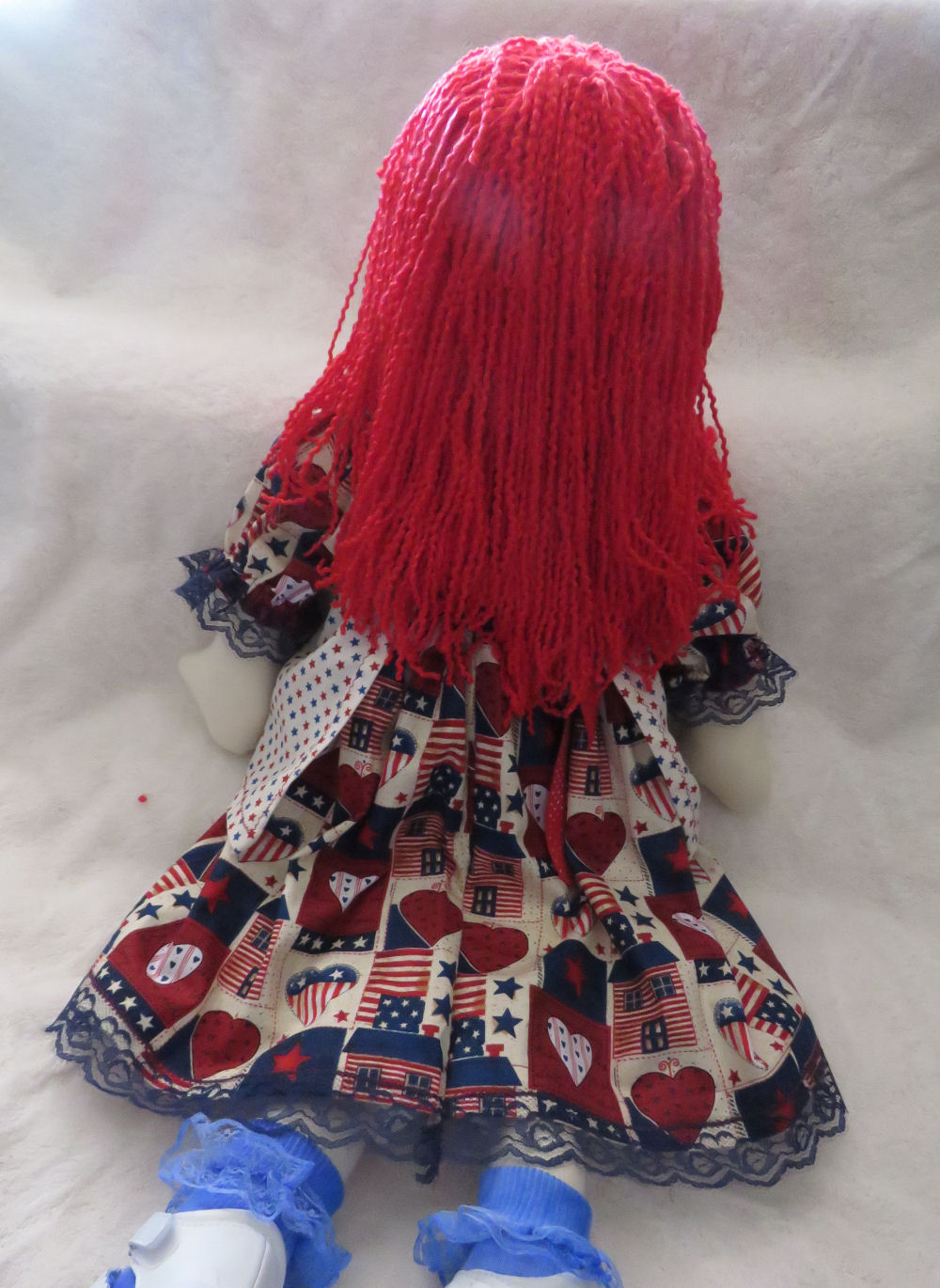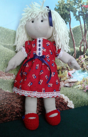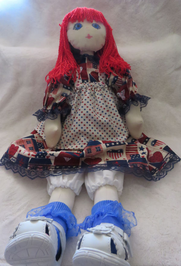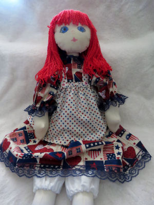 My child doll is Patriotic Patricia Ann (27"). She is a modern day Raggedy Ann made with my own pattern!