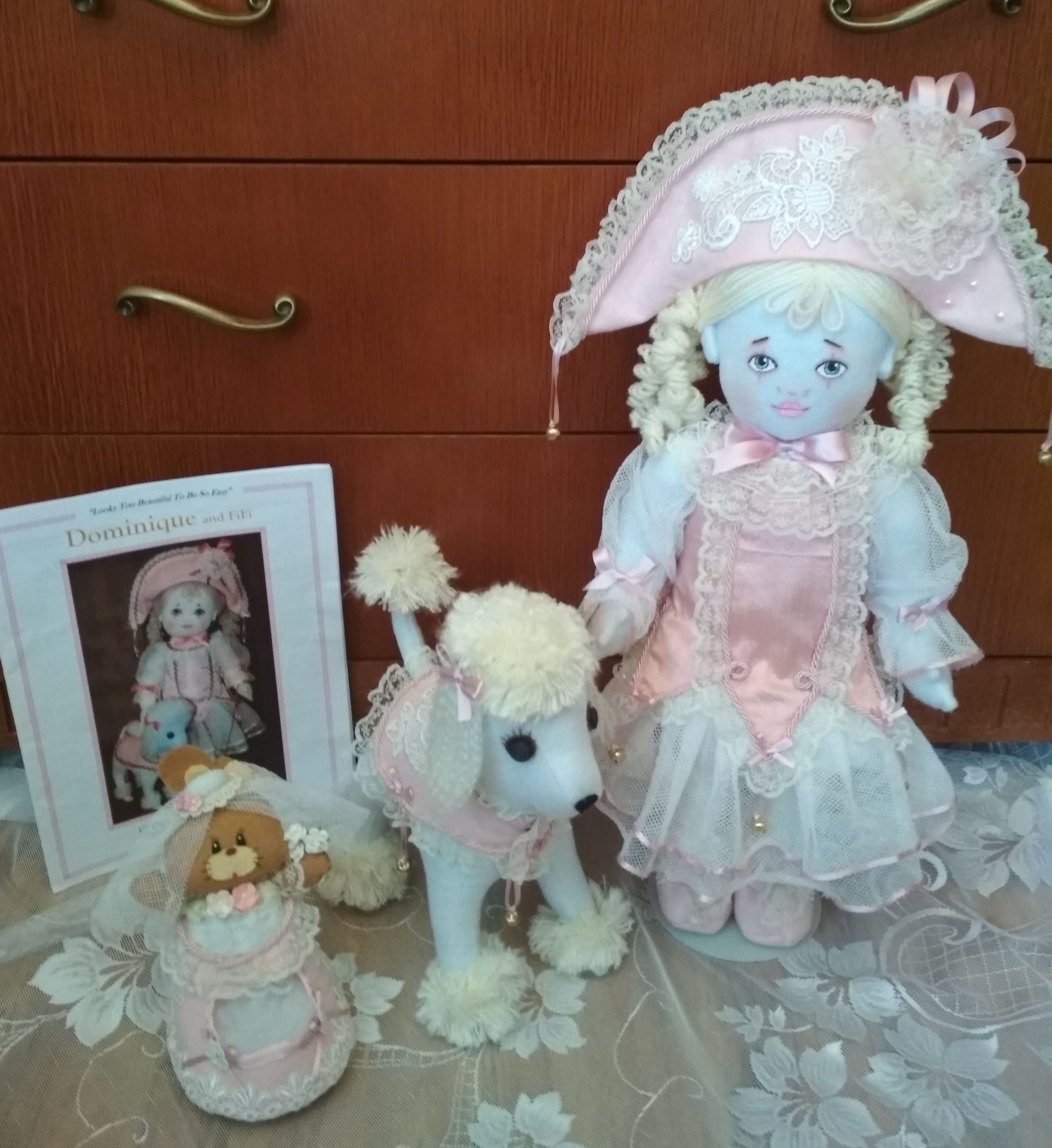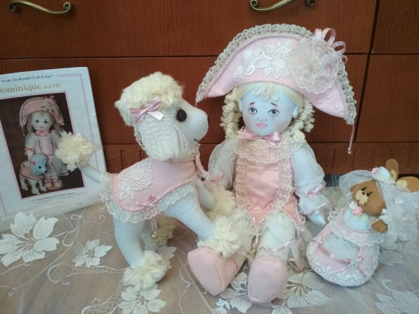 Beautiful 17" fully-jointed doll with darling 8" poodle made from a Kezi patterns.