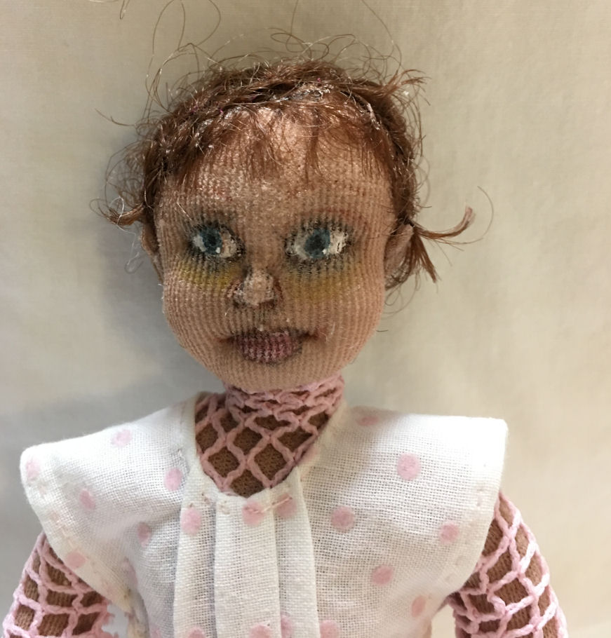 The toddler is named Tyla. She has a pet bunny called Biscuit which is also created by me. Both are stuffed with polyfil.