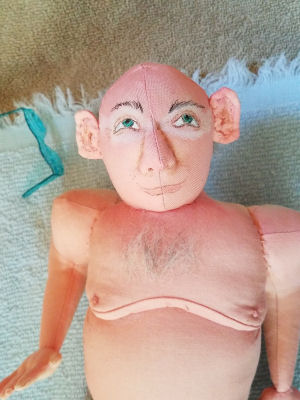This is a Jill Maas Design, the Father of the Bride doll. I named mine the Pappy doll... I needle felted the hair on his head and his mustache and eyebrows. He stands about 16 1/2 '' tall.