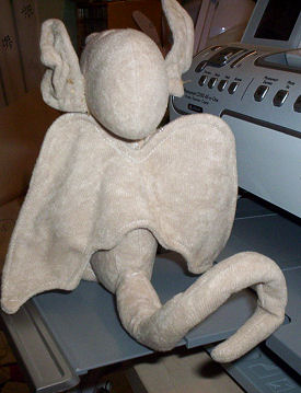 The doll's name is Galin, baby gargoyle, created by Shelly Hawkey. I bought the pattern from Dollmakers Journey.  I used pipecleaners in his ears , fingers and tail to make them poseable. I sewed on his legs and tail and hot glued his arms, ears, and wings, it wasn't as hard as I thought it would be.
