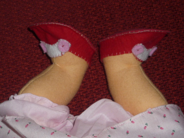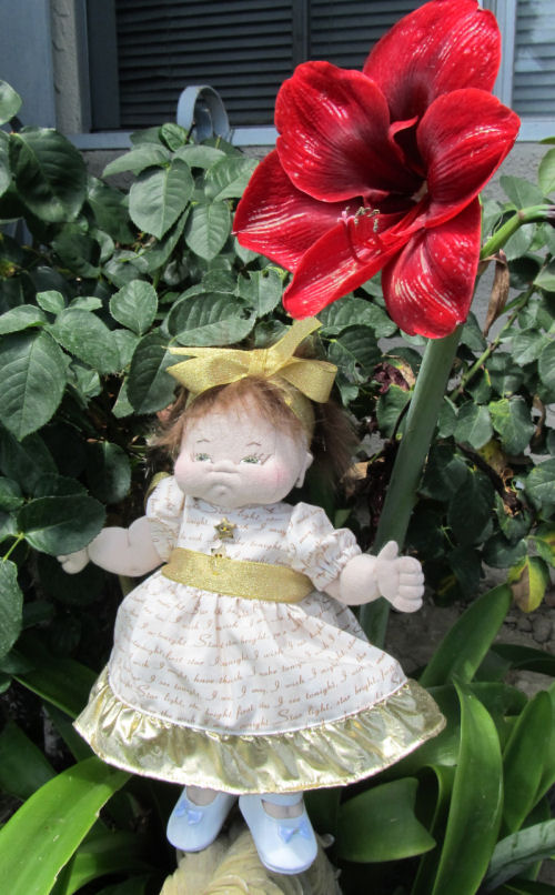 Her name is Grace. She is made from Darlene Rausch's excellent doll pattern Elaine. The pattern has no seams on the