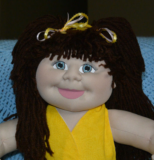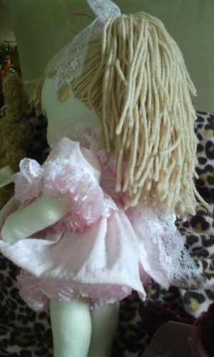 cloth head. She has been painted with artist's acrylics and her wig is
