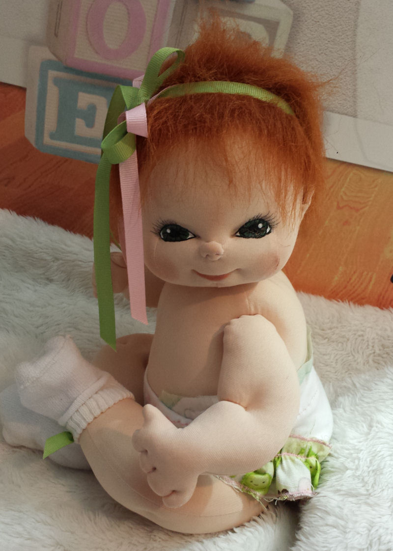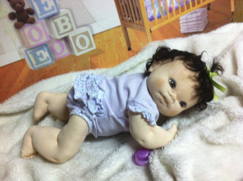 I started learning to make needle sculpted dolls in 1984 & in 2003 I developed my own patterns & sculpting techniques. In 2010 I began signing my dolls with a special hart on their chests. All my dolls are meant to be cuddled by a child or a collector so I don't use hard plastic joints or wire armature.