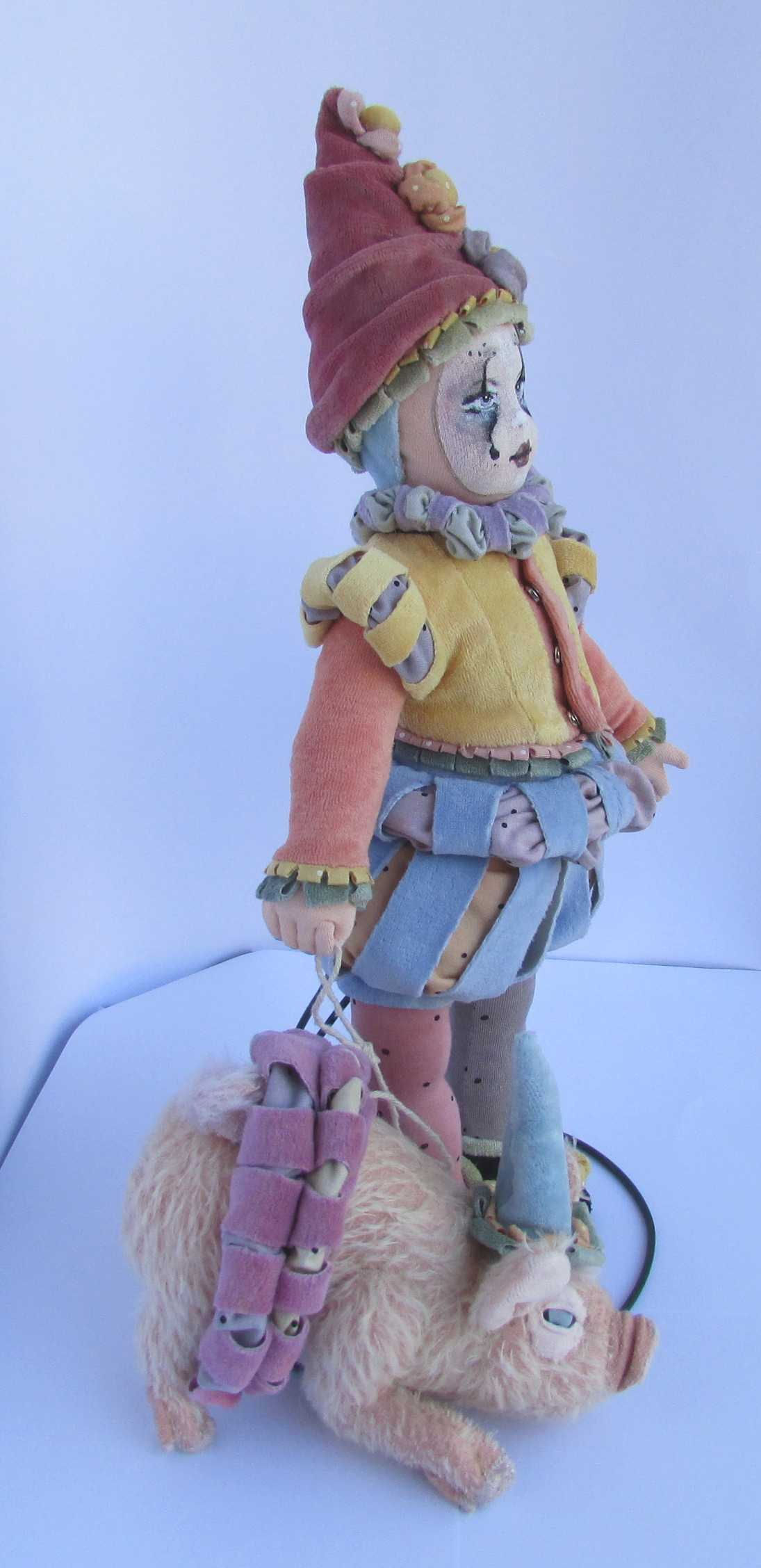 Fixed figure: doll cm 43 tall, cloth body by my own project and cloth over clay head in slip fast by a plaster mould I've bought.