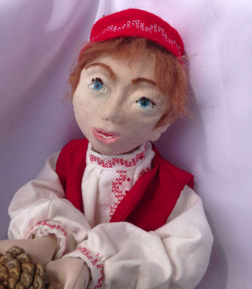 I embroidered her eyes. I used crayola colored pencils for the lips, freckles, and eyebrows. I used a crayola crayon for the cheeks. For the face molding, I used polyfil and felting needles to shape the nose, lips, chin, and cheeks.