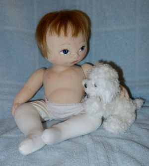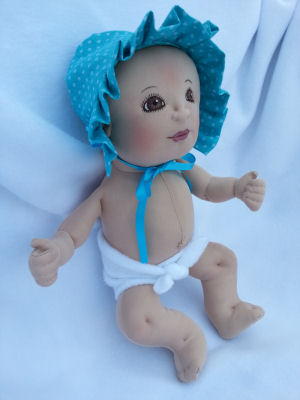 "Snuggles" is a sweet 17" baby doll created from the pattern "Universal Toddler" by Gloria J. "Mimi" Winer. By changing the size of the head and the legs compared to the body, the pattern went beautifully from being a toddler to a baby. Mimi's instructions are wonderful, easy to follow and the results are very satisfying.