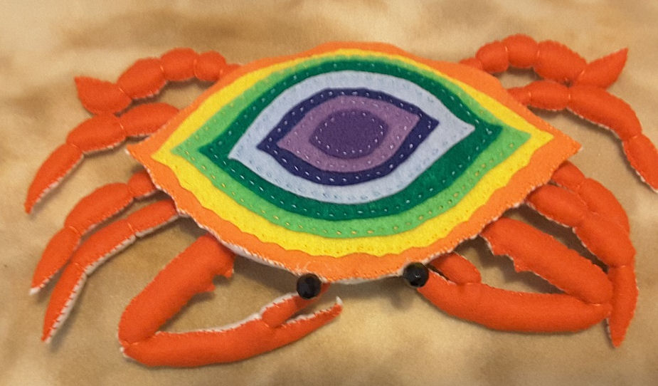 Harley is his name. He is from the pattern Felt Rainbow Crab by Fairyfox. I have wanted to make this crab for a while and the Challenge gave me the excuse.