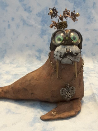 Oscar the Lovelorn Walrus. He is from Frowning Francis' Steampunk Walrus pattern reduced to 65%. Liberties were taken.