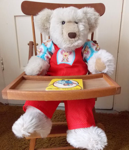 This is Raymond bear made out of a vintage Simplicity pattern.